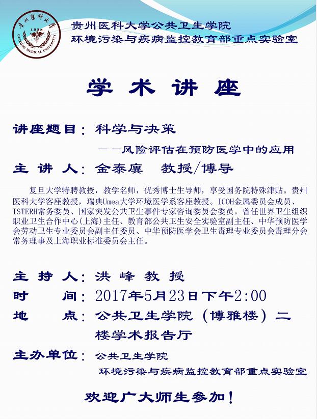 讲座通知(2017年5月23日):复旦大学 金泰廙教授